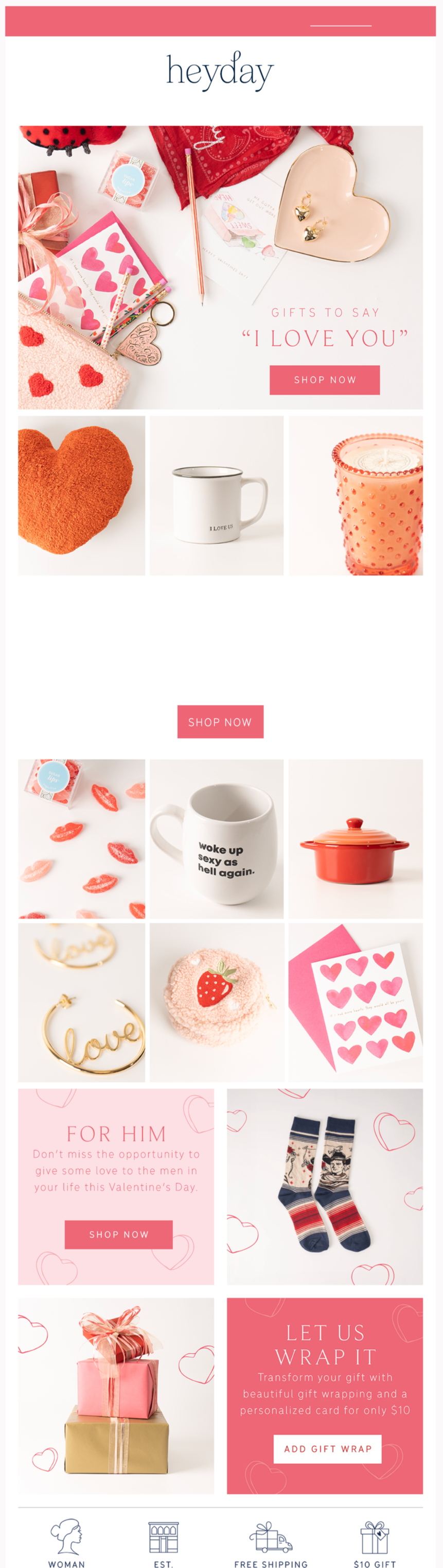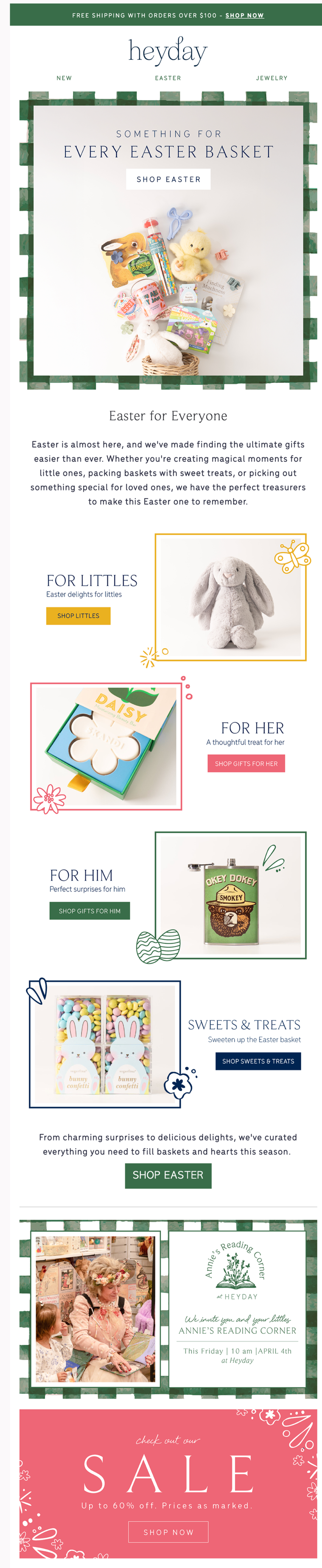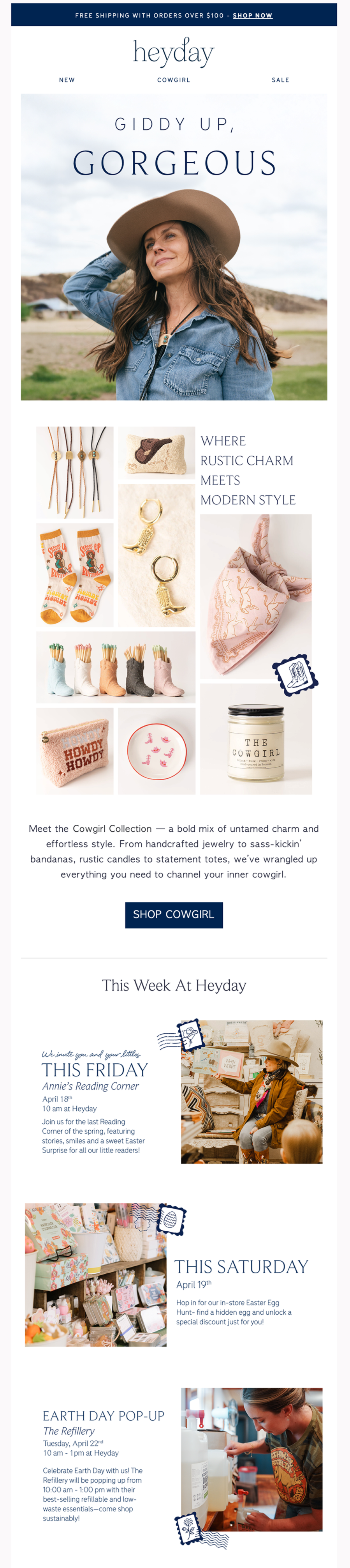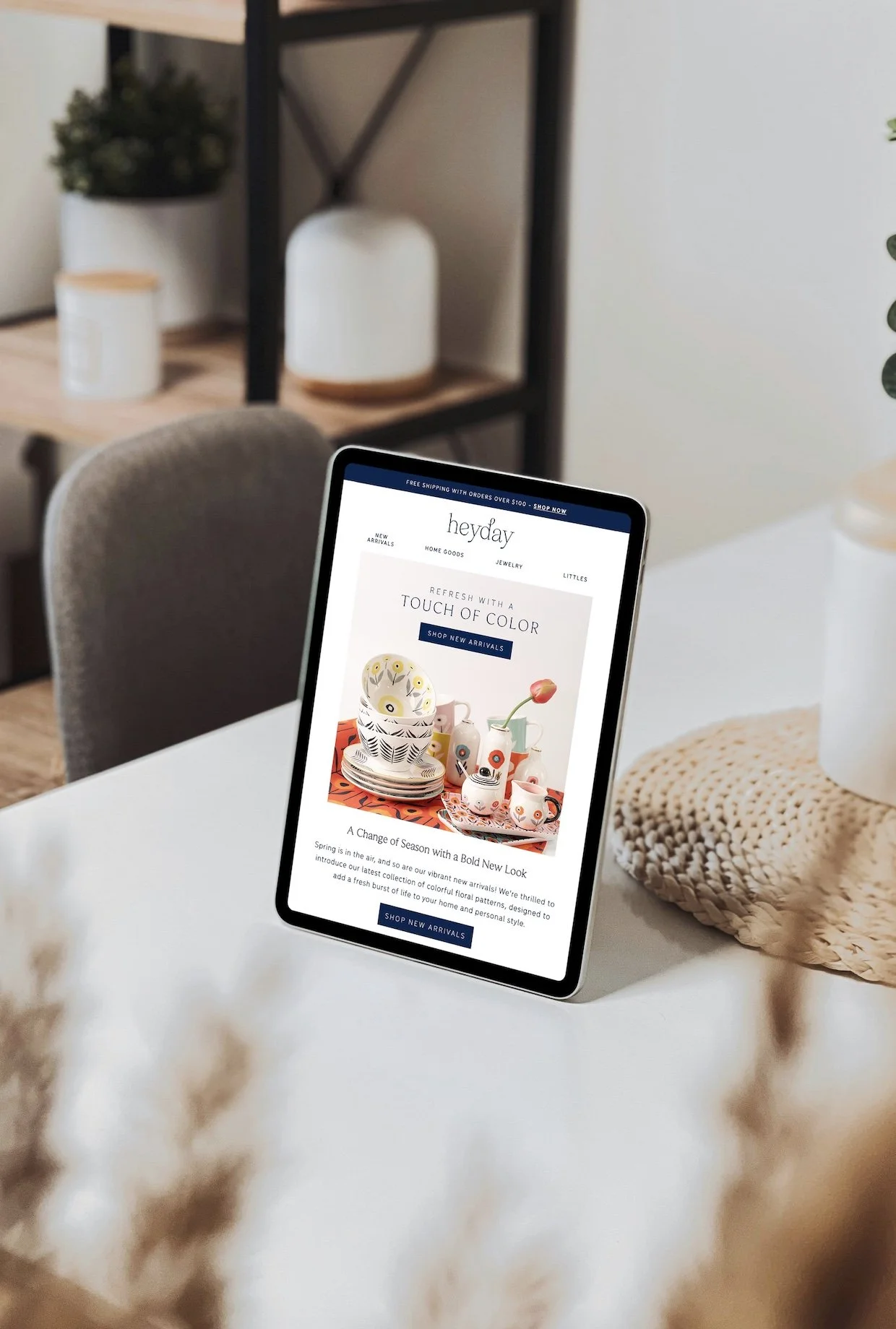 Completed a graphic design role supporting Heyday’s in-house ecommerce and marketing team. Contributed to digital and in-store design assets across multiple channels such as in-store signage, social media, and email.